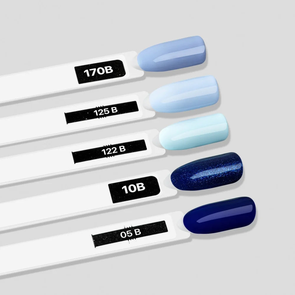 Kolekcia Basic Collection gélových lakov vytvára jednotný, hustý farebný náter už v dvoch vrstvách aplikácie. Výborná hustota gélového laku, ako aj jeho ďalšie výhody, sú spôsobené jeho inovatívnou formulou. Gélové laky v tejto kolekcii sa počas aplikácie nerozmazávajú ani nezanechávajú pruhy a vysoko pigmentované odtiene po polymerizácii nezanechávajú stopy pigmentu na štetci vrchného laku. Paleta pozostáva zo 170 najpopulárnejších a najžiadanejších odtieňov od majstrov, rozdelených do farebných sérií. Gélový lak č. 122 B (séria MODRÁ) má smaltovú textúru, farba je nebesky svetlá. Odporúča sa aplikovať rovnomerný náter v dvoch tenkých vrstvách s polymerizáciou každej vrstvy v UV lampe na 2 minúty a v LED lampe na 30 sekúnd.